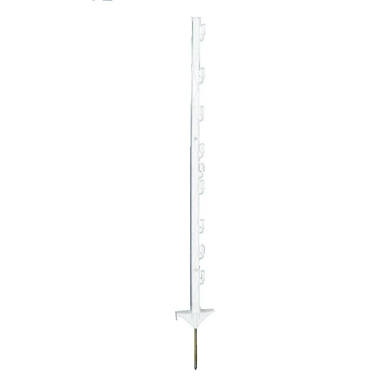 Zeer stevige en duurzame kunststofpaal met 7 draadhouders en extra versterkte voet. Geschikt voor alle soorten kunststofdraad en lint tot 40mm. Het unieke ontwerp van de afstand tussen de draadhouders maakt de paal geschikt voor bijna alle diersoorten. Maximale afrasteringshoogte 0,85m.