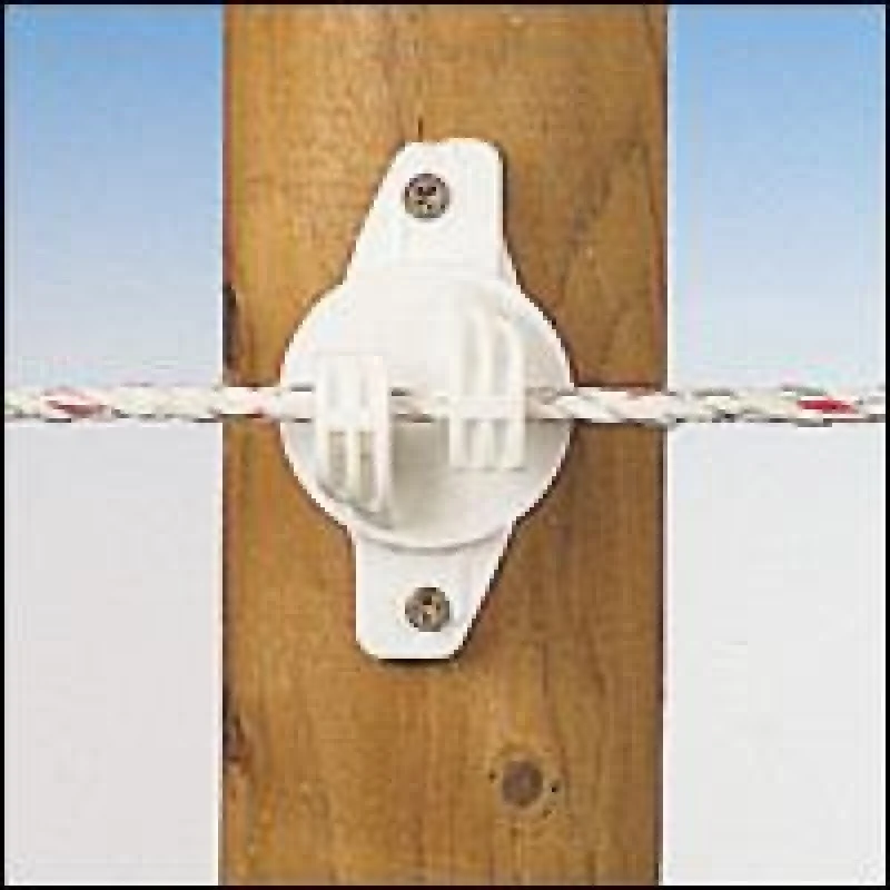 Zeer sterke isolator voor houten palen, geschikt voor cord en Gallagher Equifence (permanentkabel). Uitermate geschikt voor bevestiging van draad op hoekpalen. De productgarantie is 10 jaar.