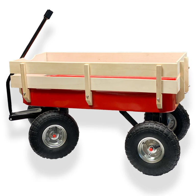 Deze stevige bolderkar is zeer geschikt om spullen mee te nemen naar bijvoorbeeld het strand. De bak van deze kar is van metaal en het hekwerk is van hout.
