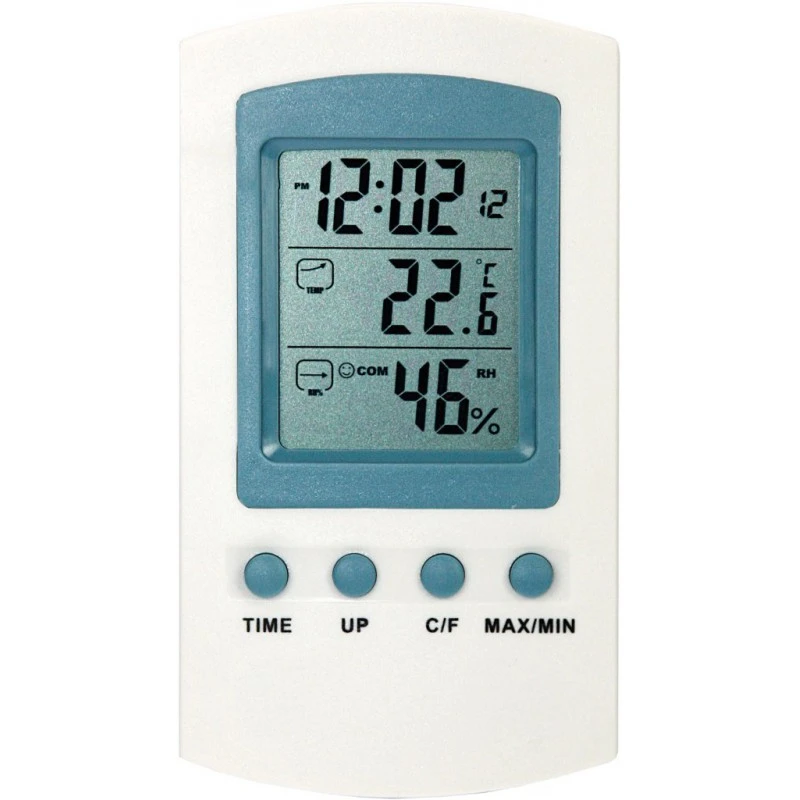 Deze thermometer is geschikt voor het meten van de temperatuur en de luchtvochtigheid. De thermometer geeft ook de tijd aan. De afmetingen zijn 135x75x19,5mm. De thermometer werkt op eeen AA batterij. De temperatuur die deze thermometer kan meten is -20 tot + 50C.